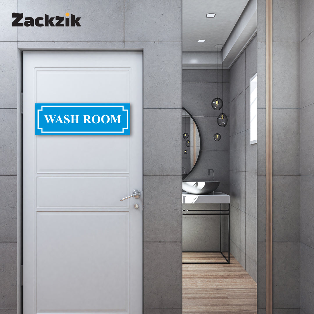 Bold Design: Blue background with clear male & female icons for quick recognition