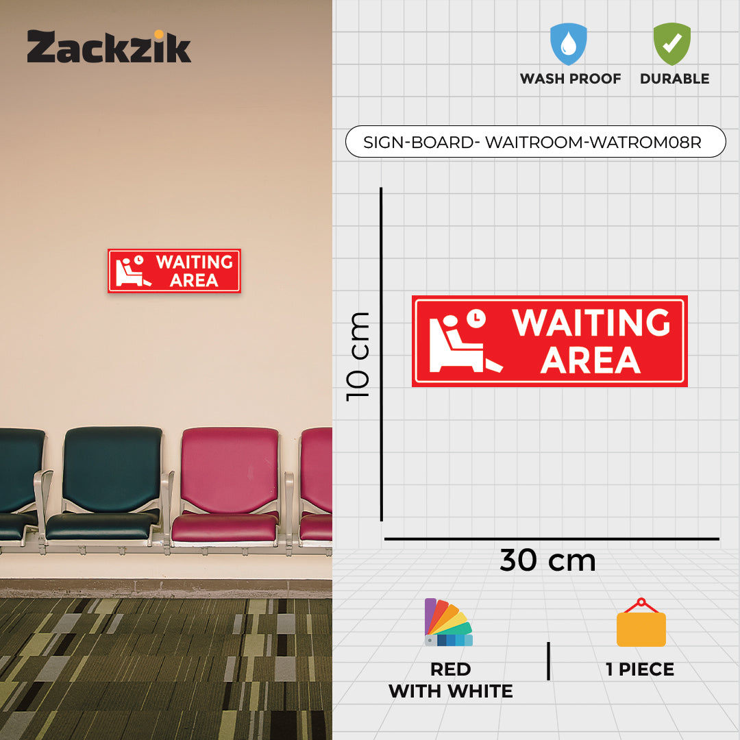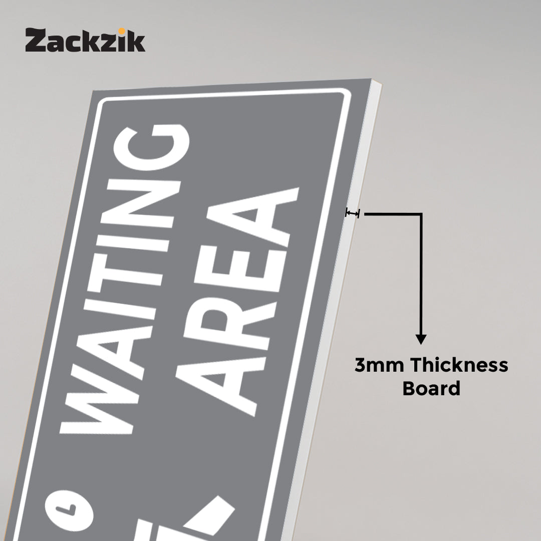 Help visitors navigate your space with this clear "Waiting Area" sign. Crafted from high-quality material, it is ideal for marking specific zones where guests or customers can wait comfortably.The visible text ensures quick recognition, reducing confusion and improving the visitor experience. Suitable for various indoor settings such as hotels, clinics, offices, and event venues, it offers easy installation and dependable performance.
