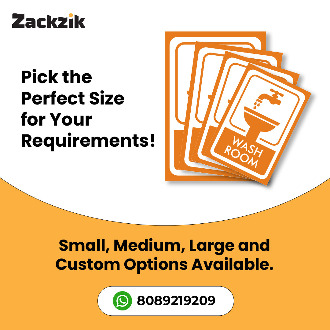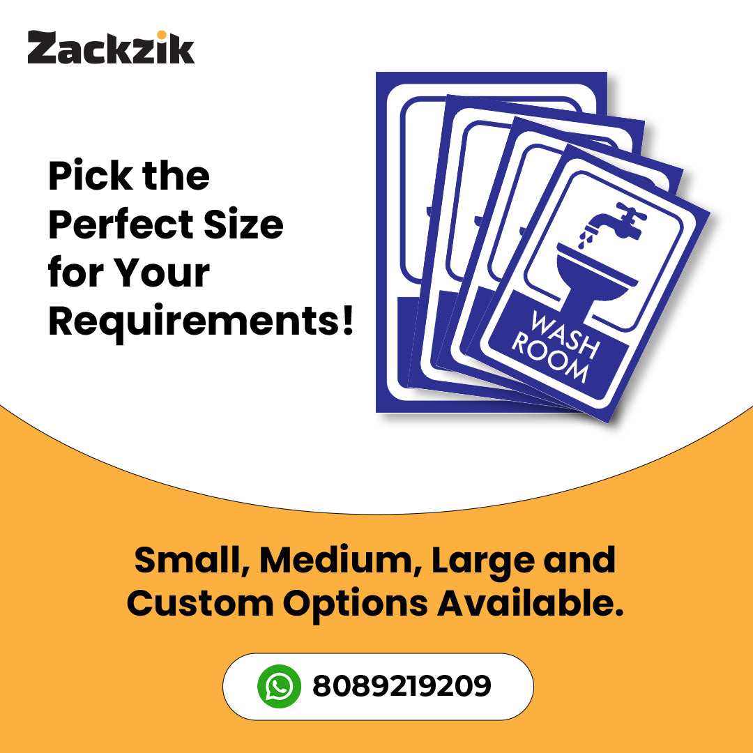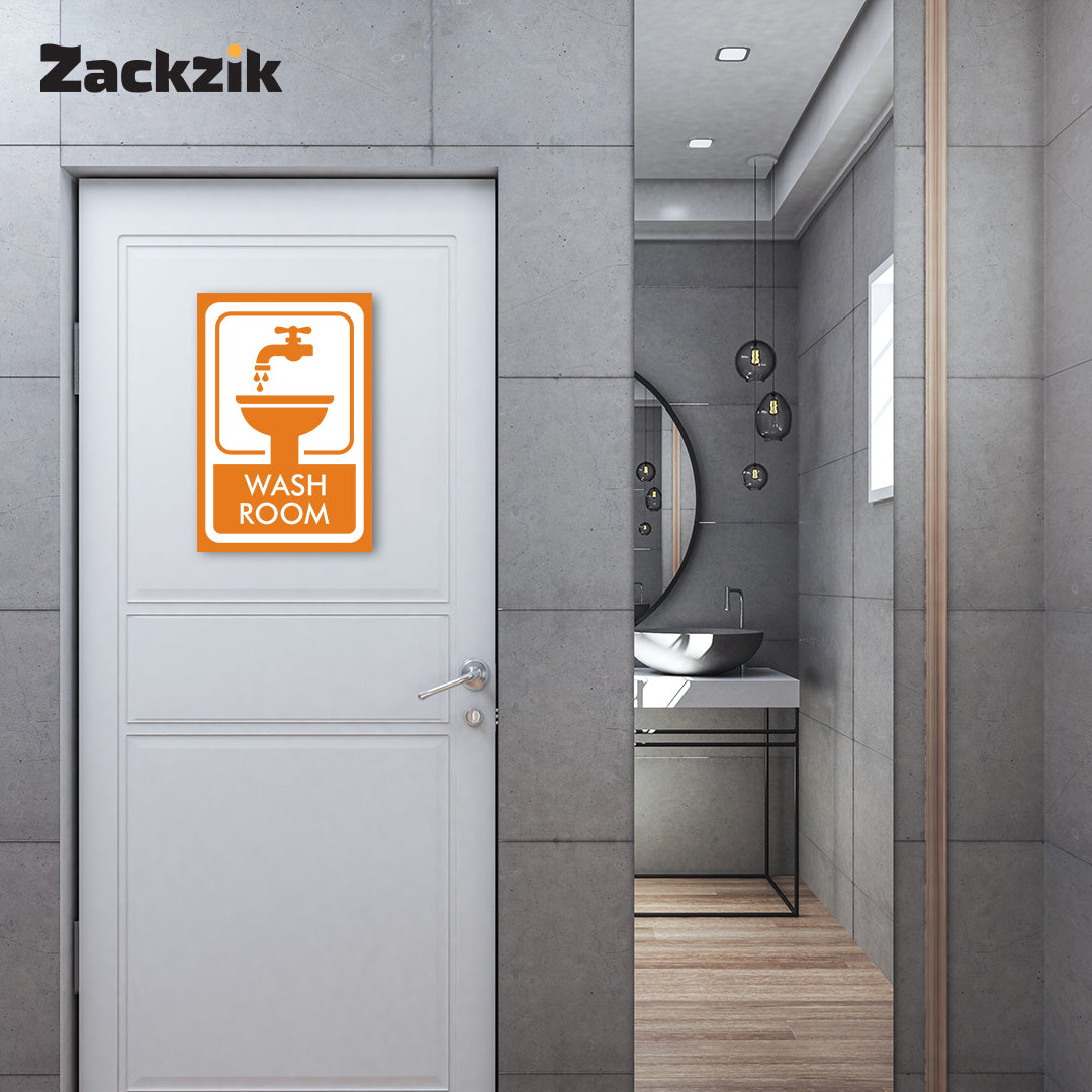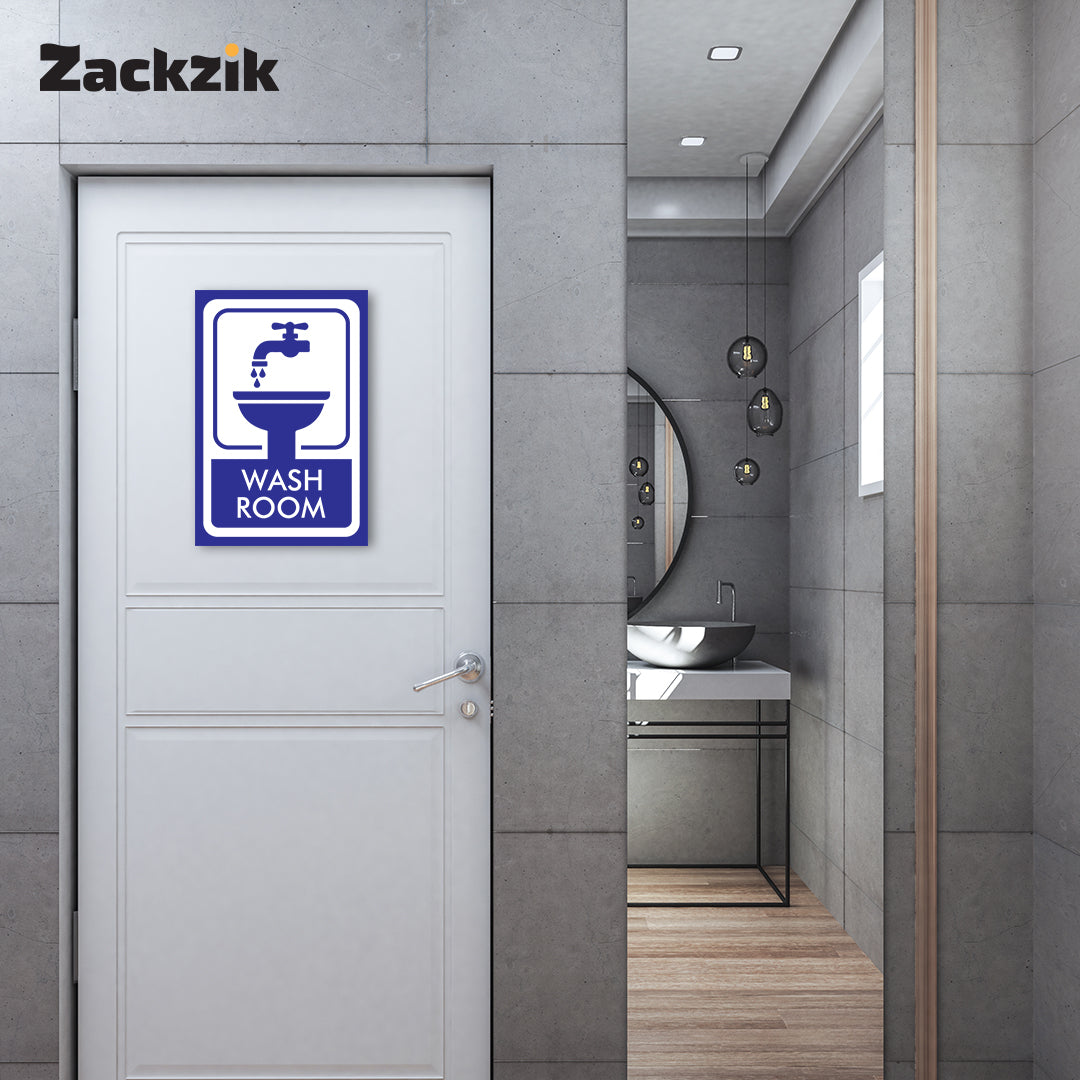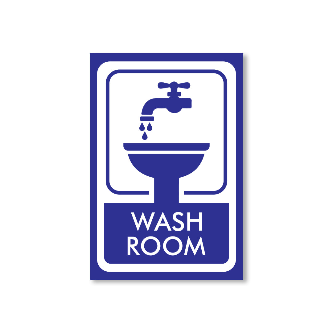 Clear Message: Bold “Washroom” text with a tap-and-sink graphic ensures quick and easy restroom identification
