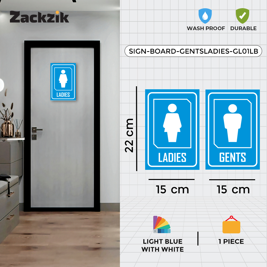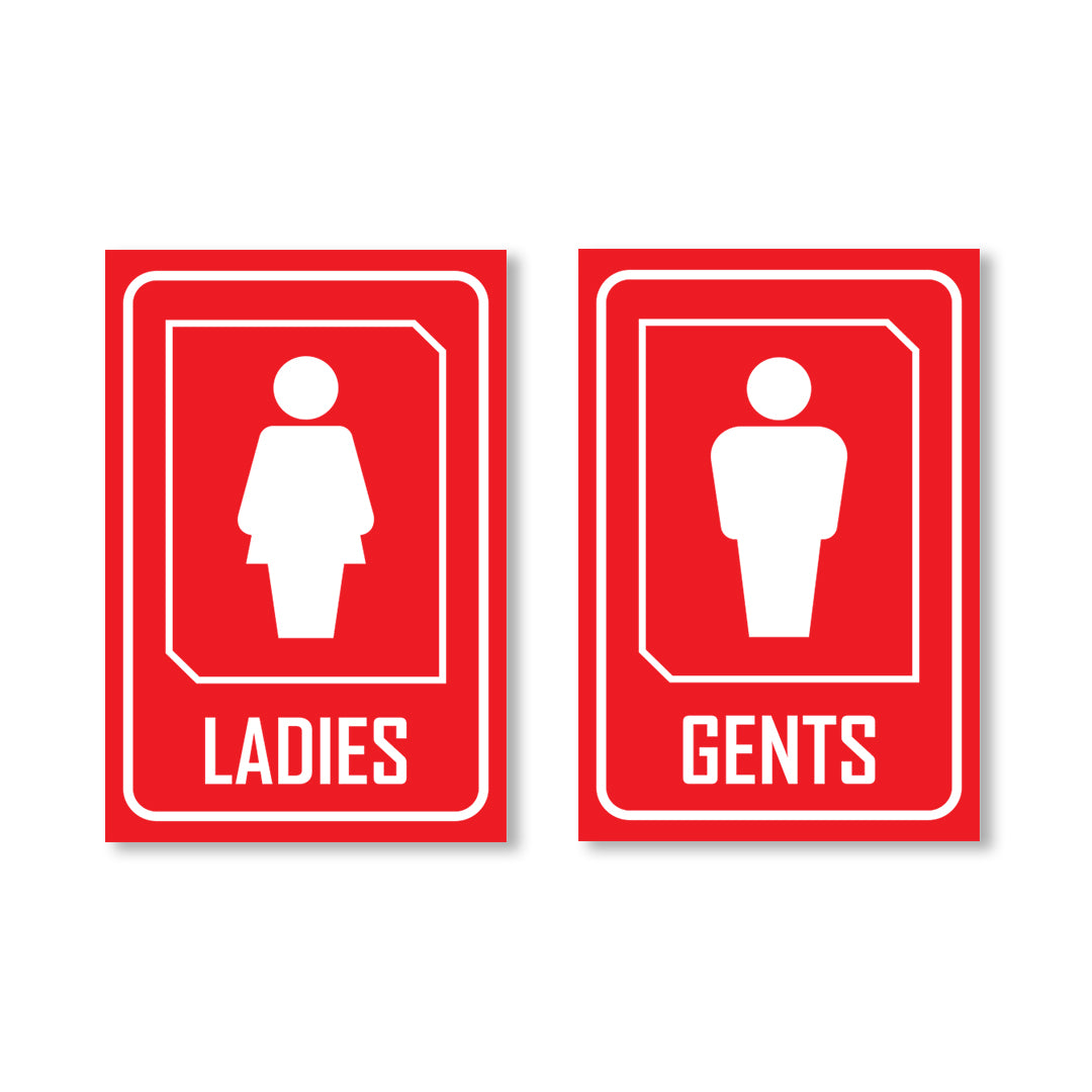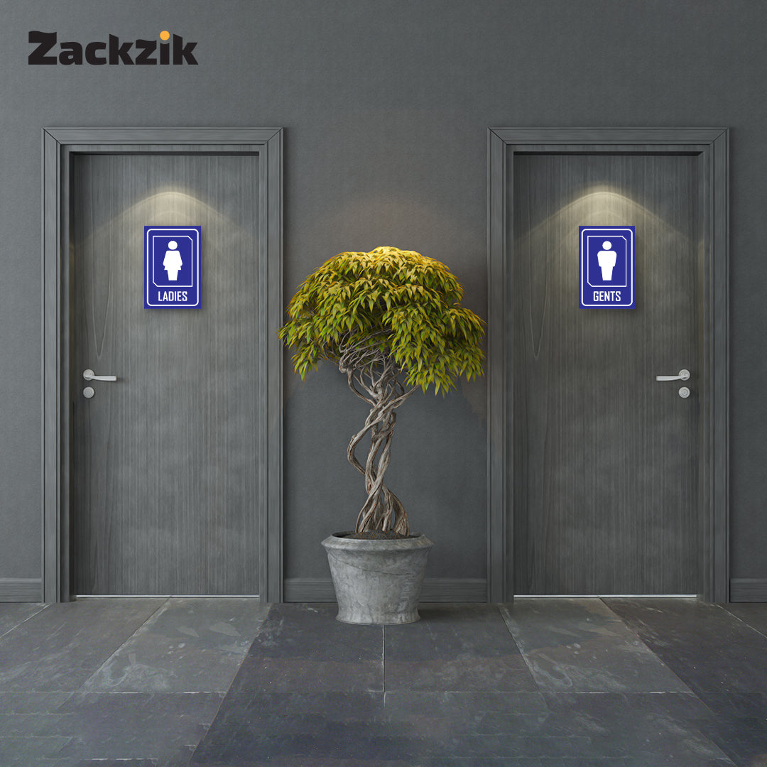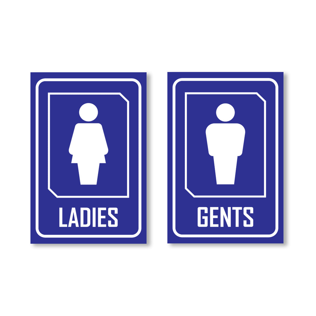 Bold Design: Blue background with clear male & female icons for quick recognition