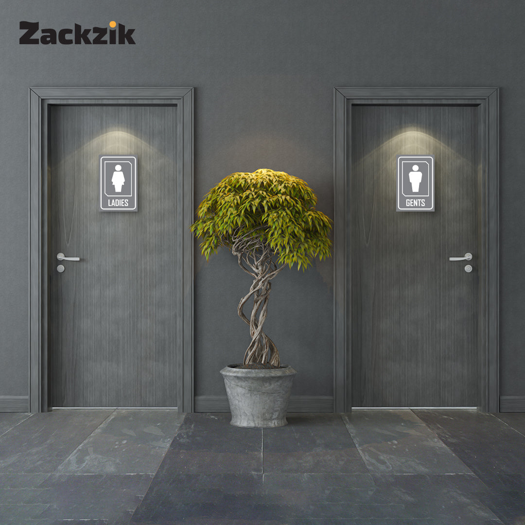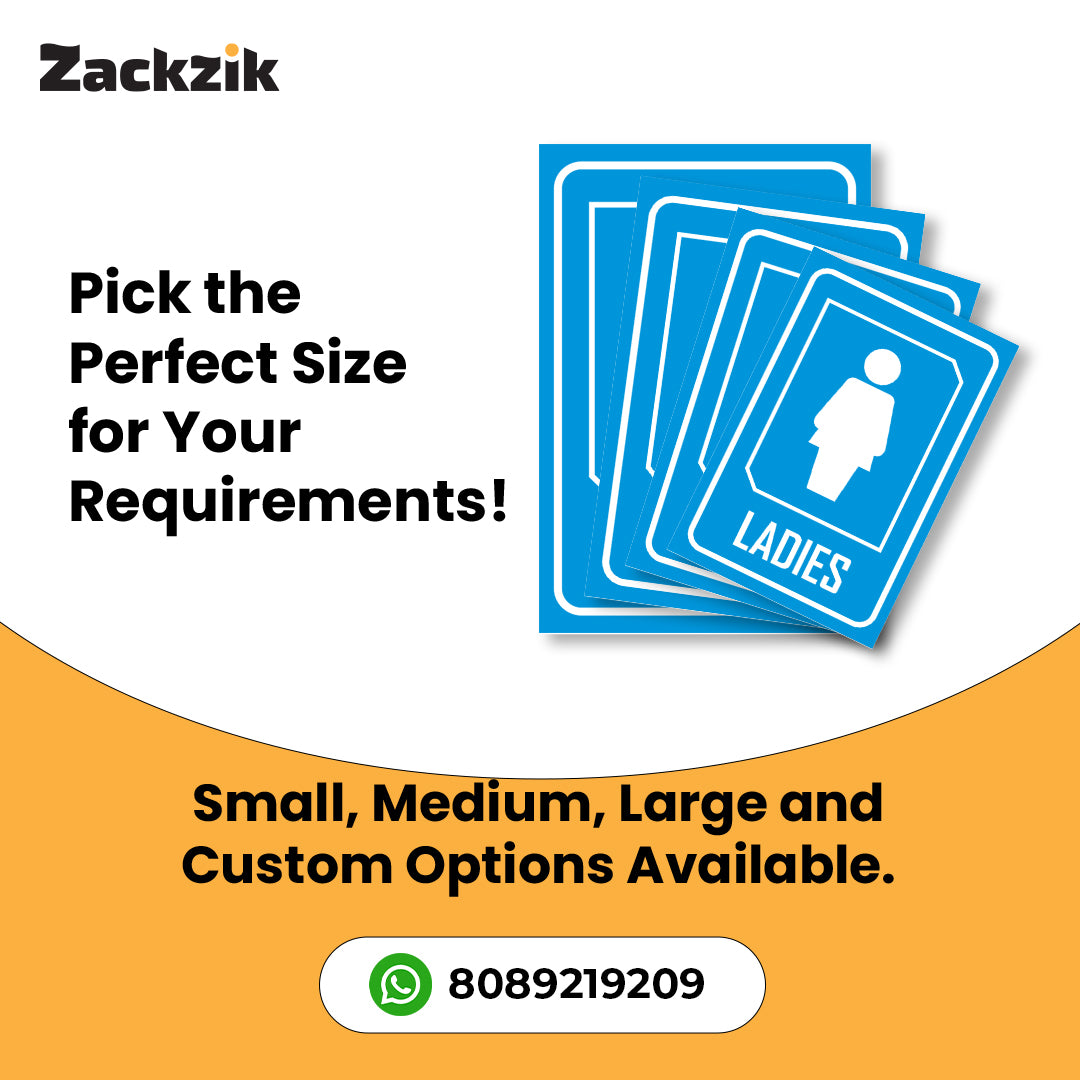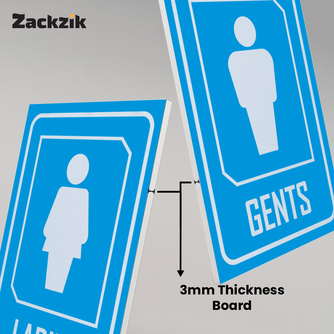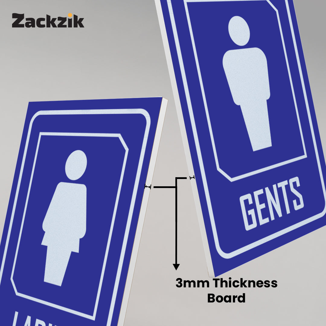 Bold Design: Blue background with clear male & female icons for quick recognition