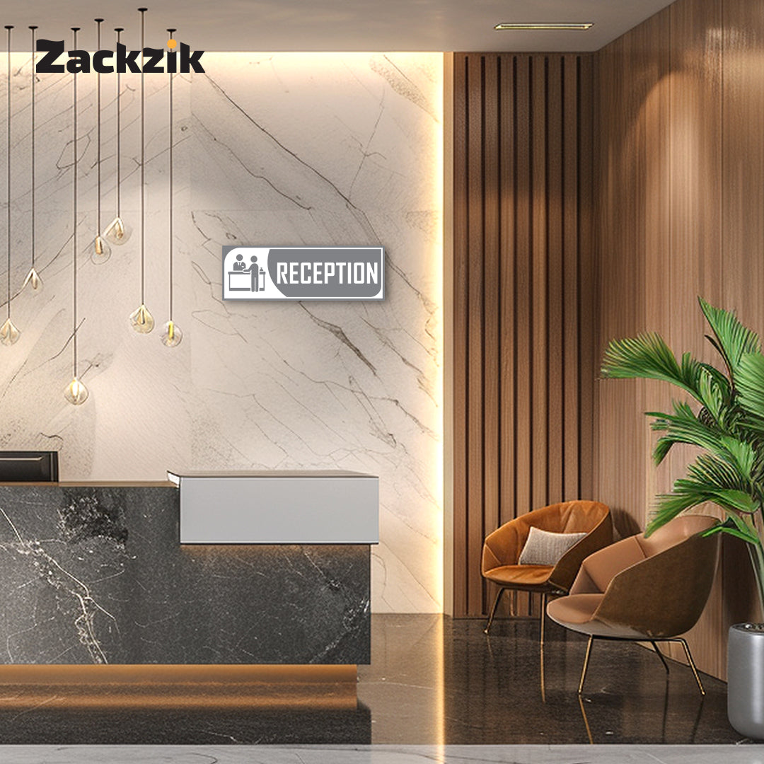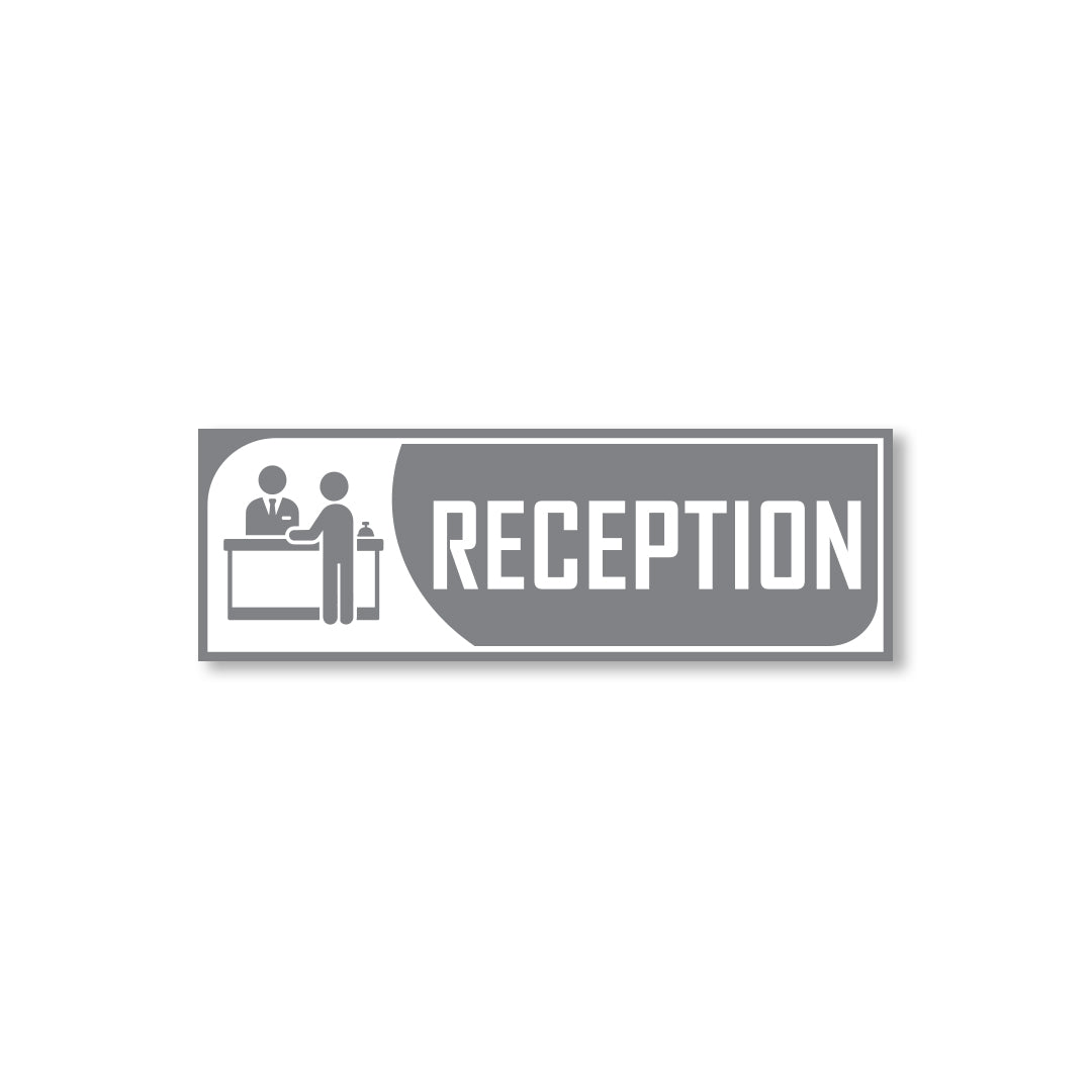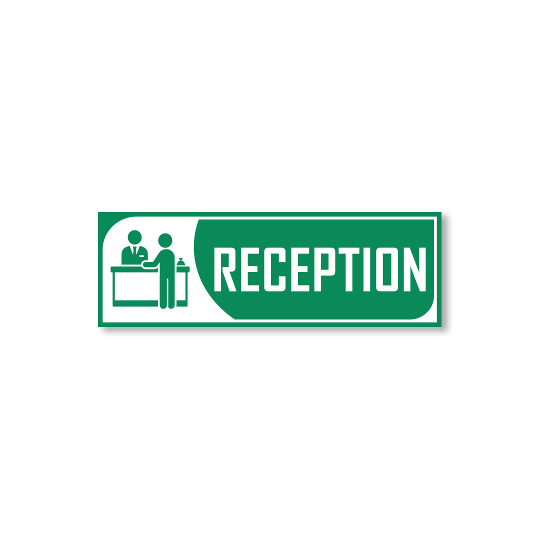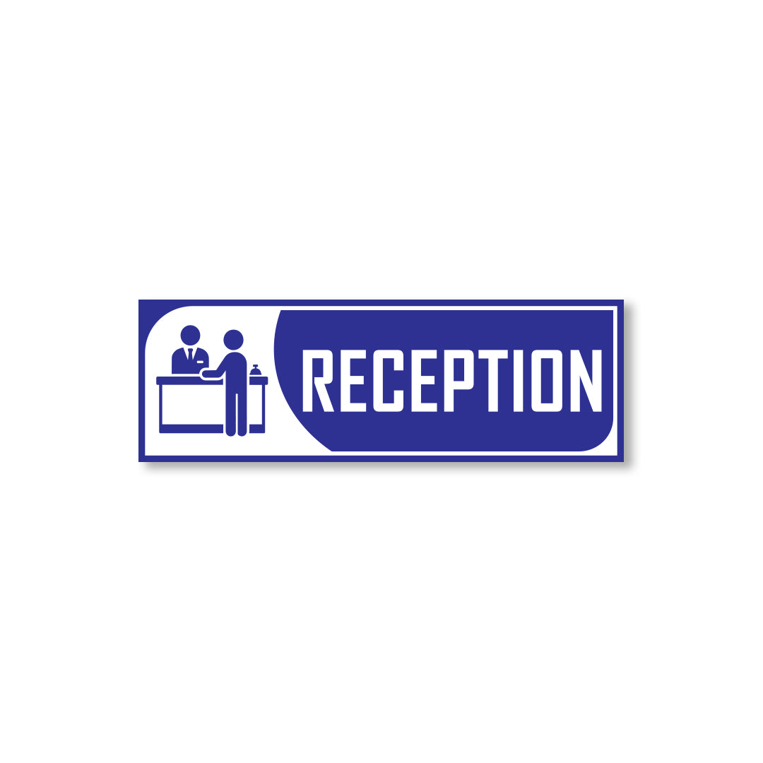 Bold Design: Clear purple-and-white reception graphic with bold text for easy identification