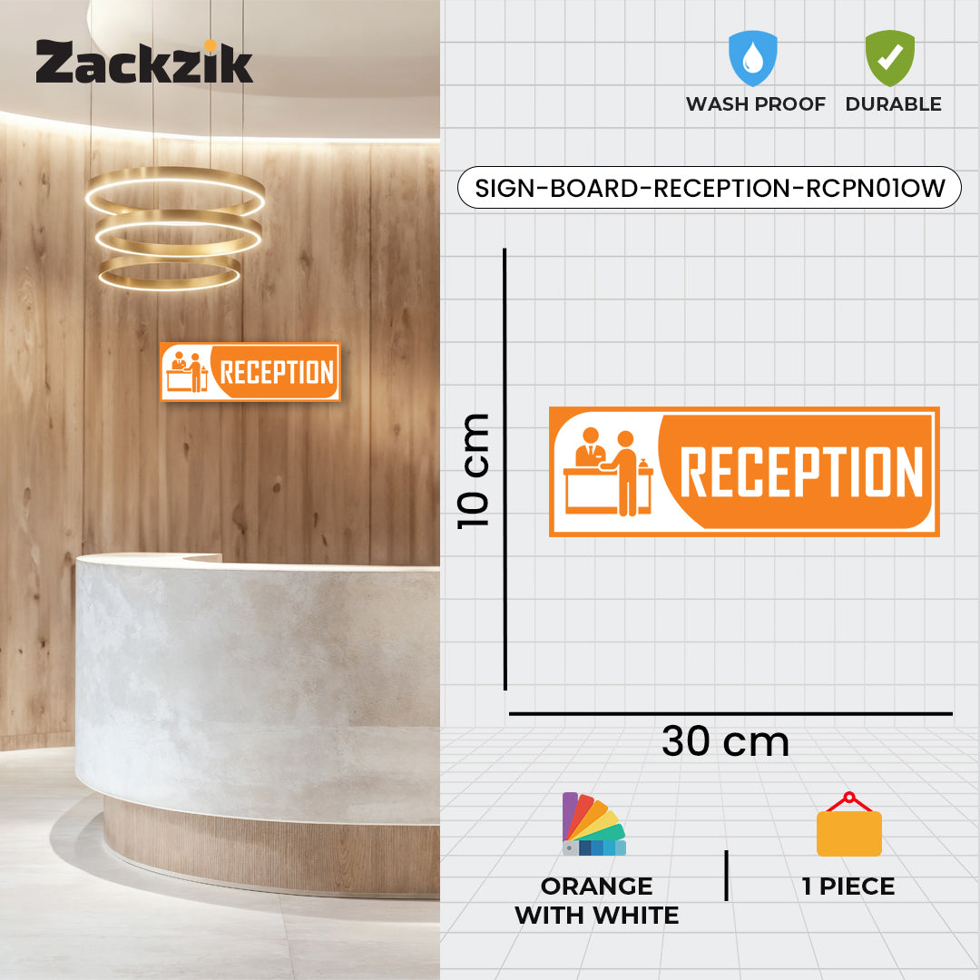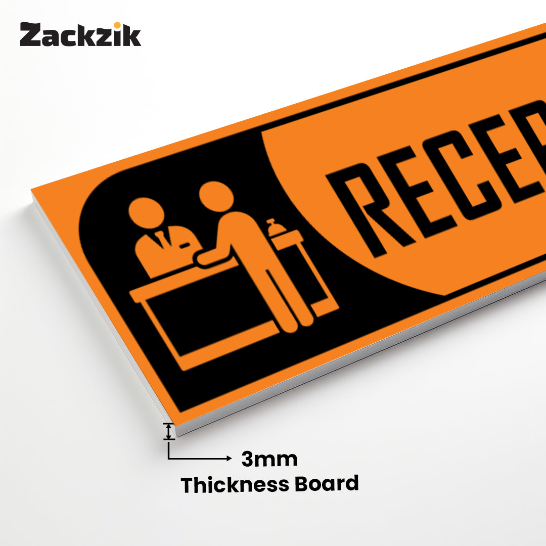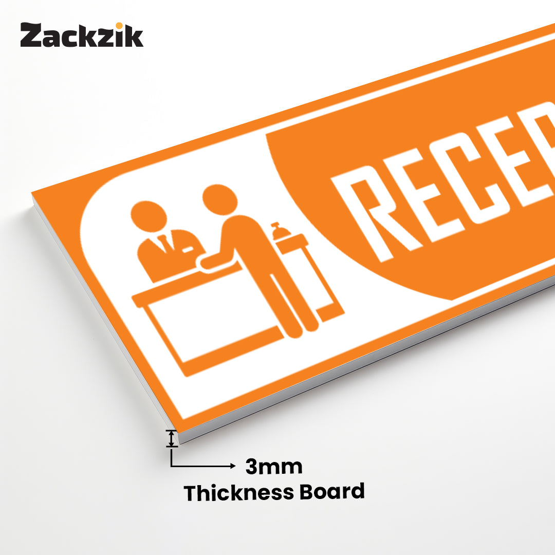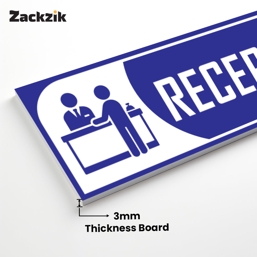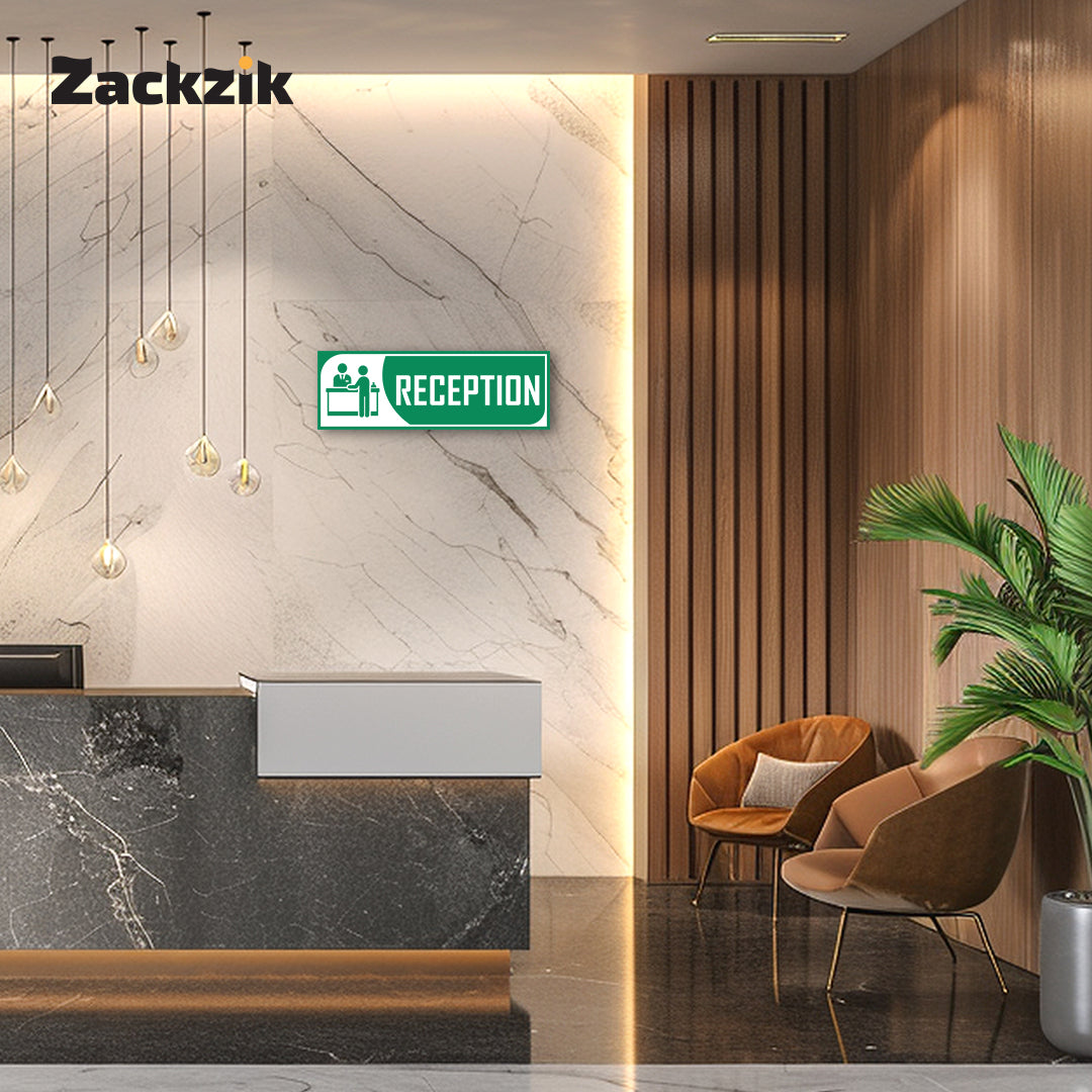 Bold Design: Clear purple-and-white reception graphic with bold text for easy identification