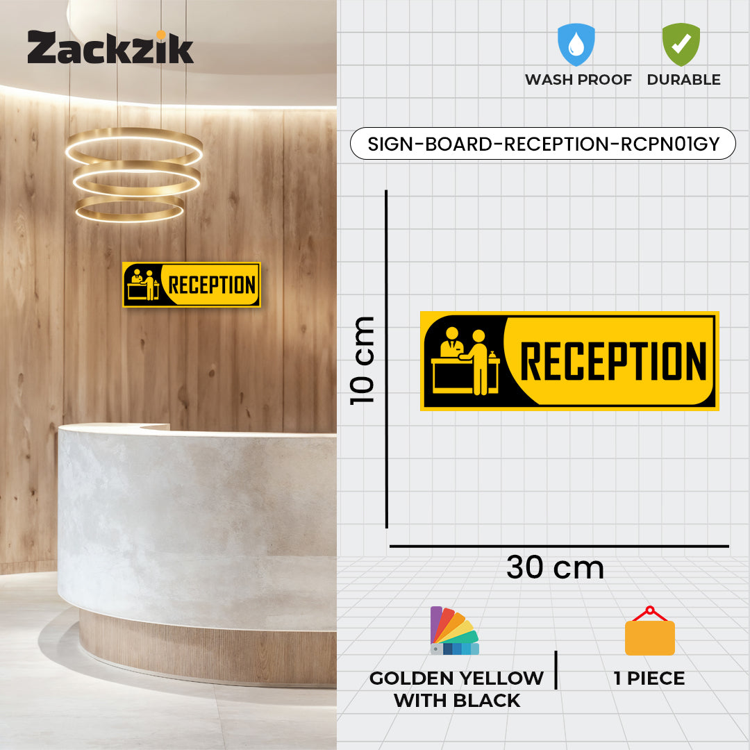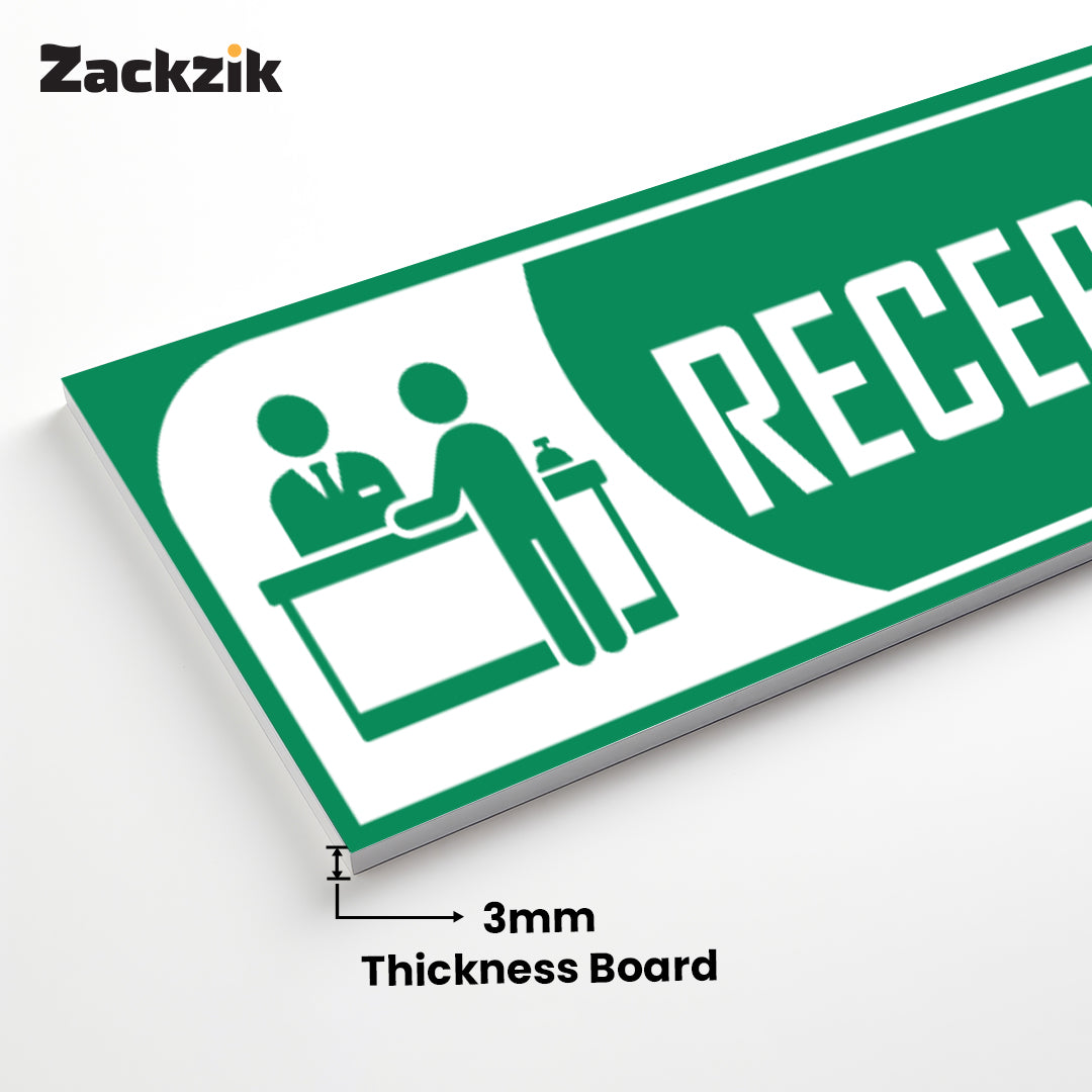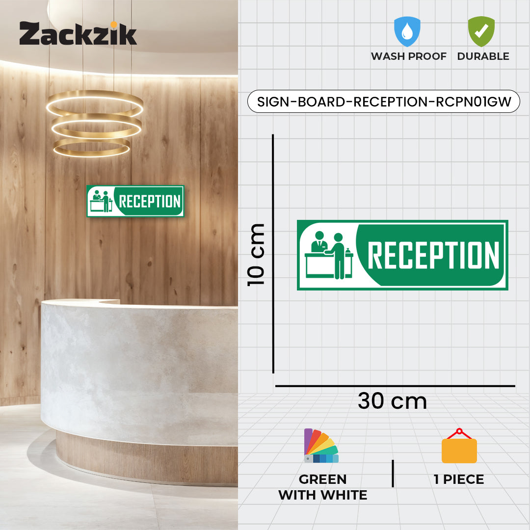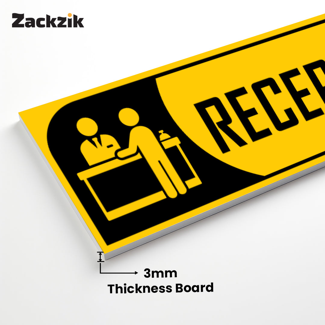 Bold Design: Clear purple-and-white reception graphic with bold text for easy identification