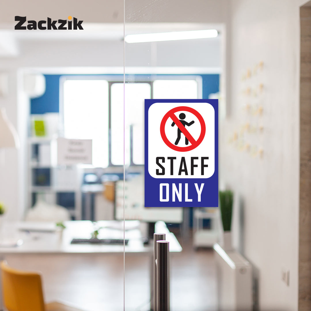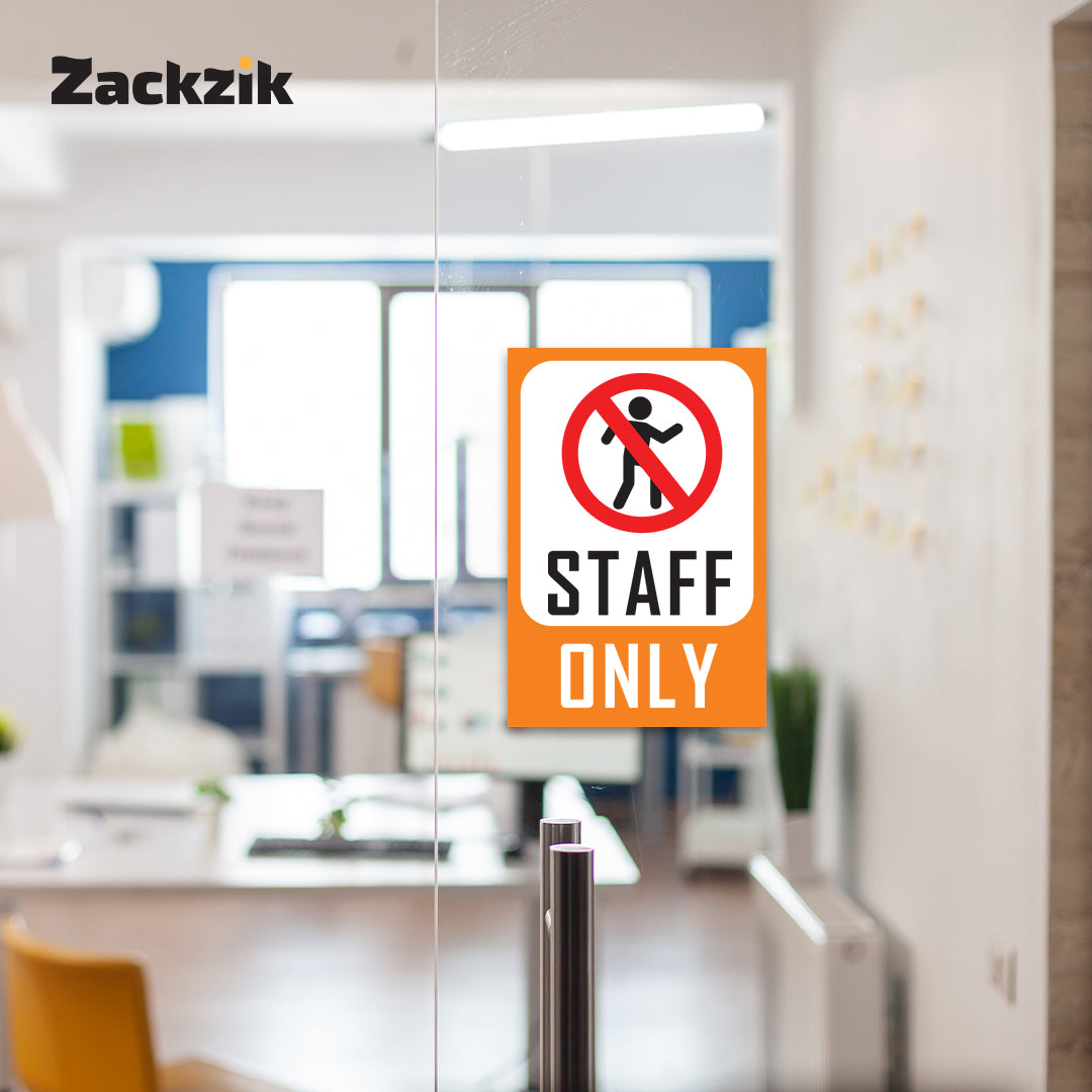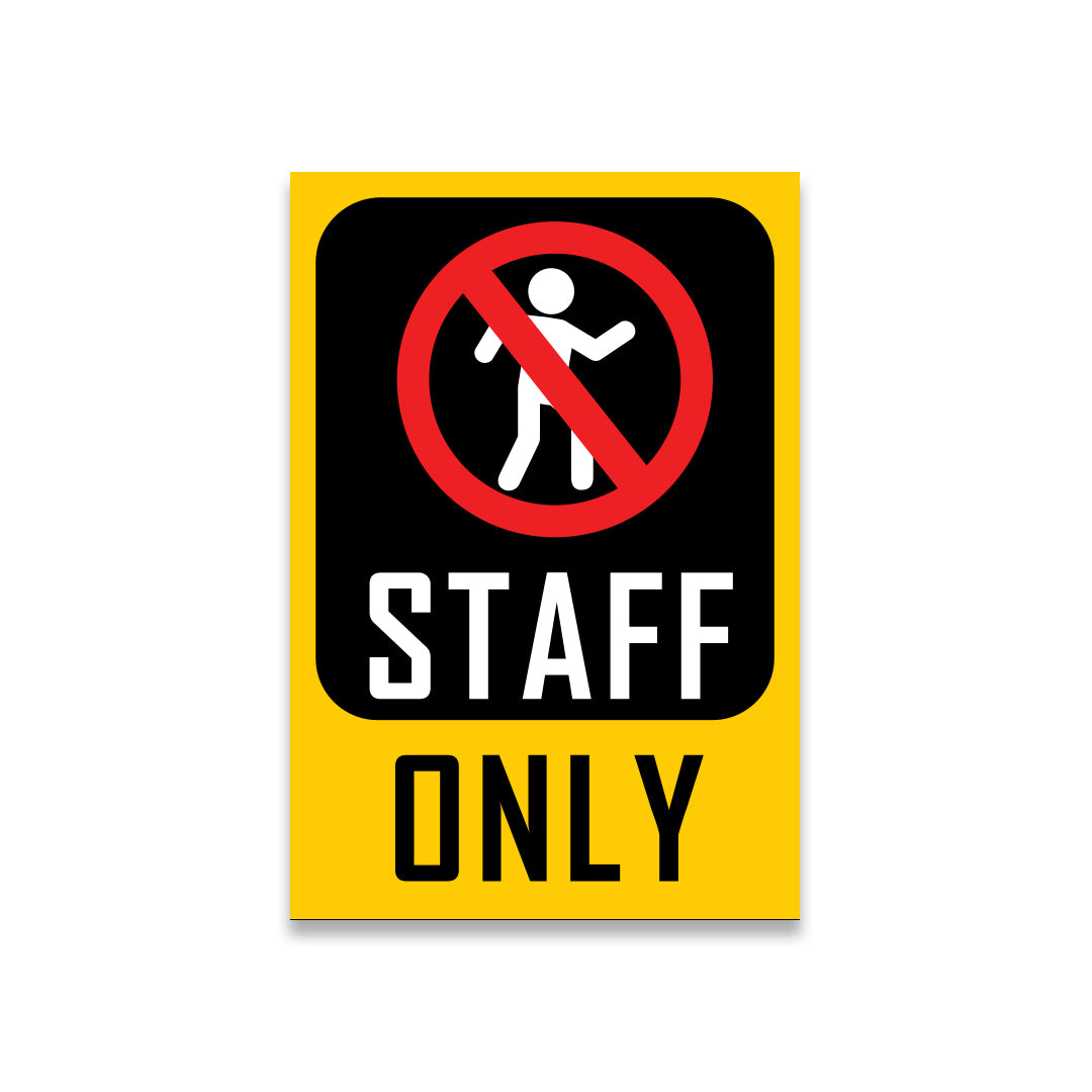 Clear Message: Bold “Staff Only” text with a no-entry graphic ensures clear restriction notice