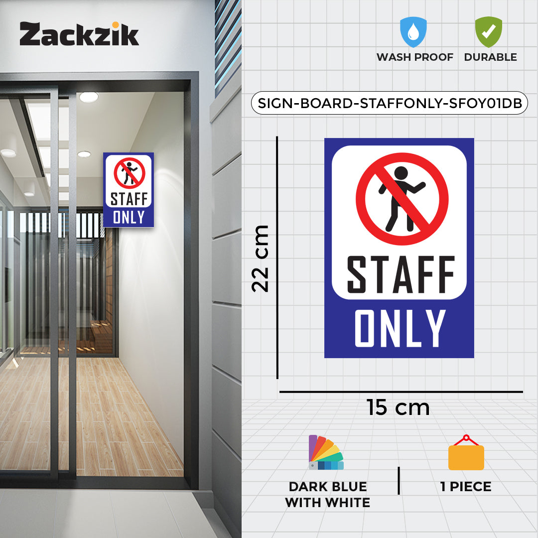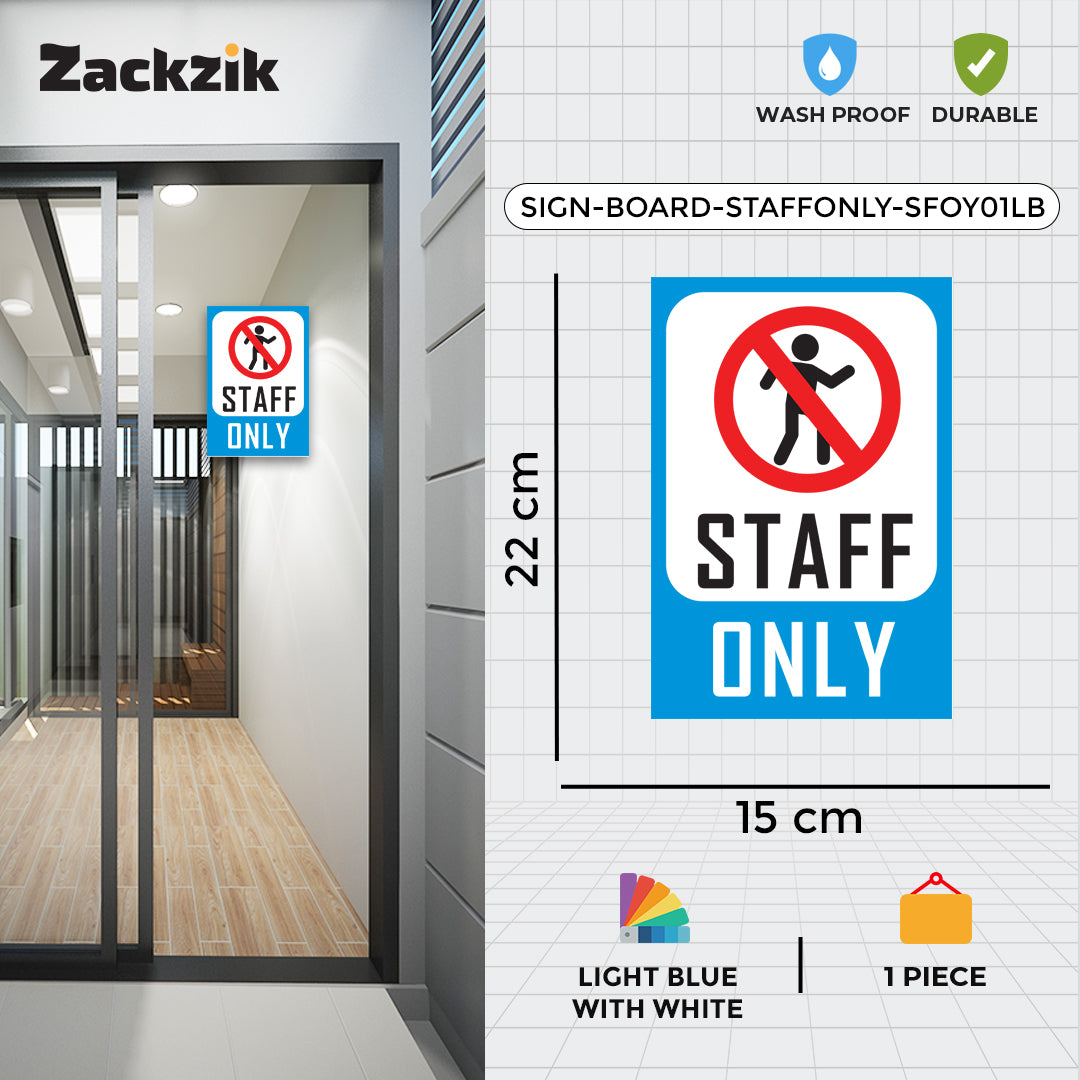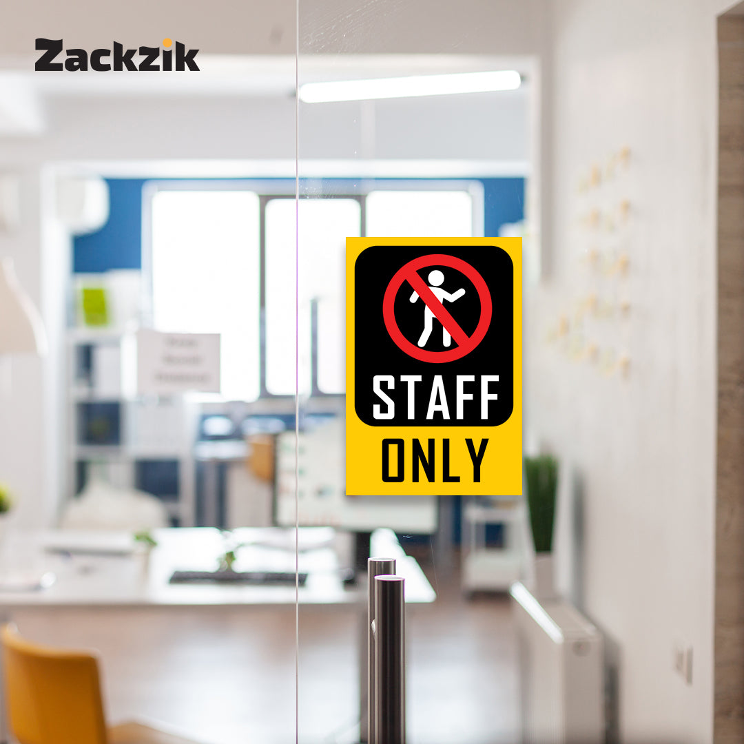 Clear Message: Bold “Staff Only” text with a no-entry graphic ensures clear restriction notice