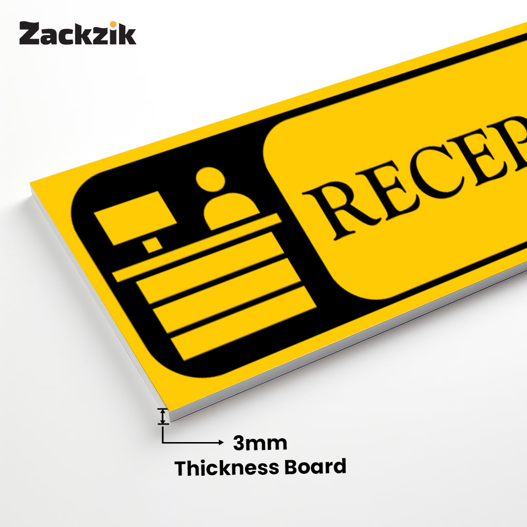 Bold Design: Clear purple-and-white reception graphic with bold text for easy identification